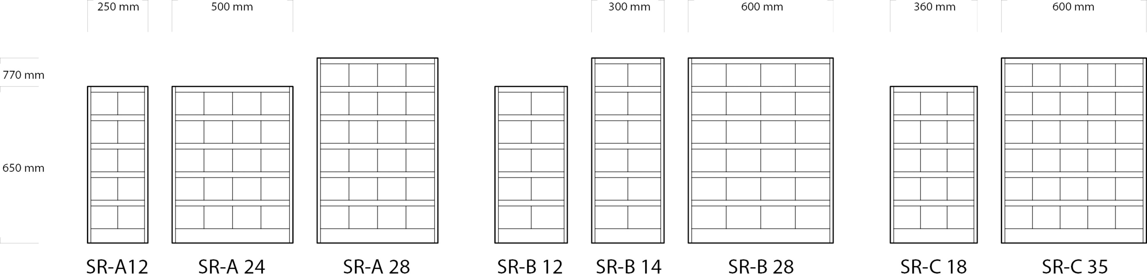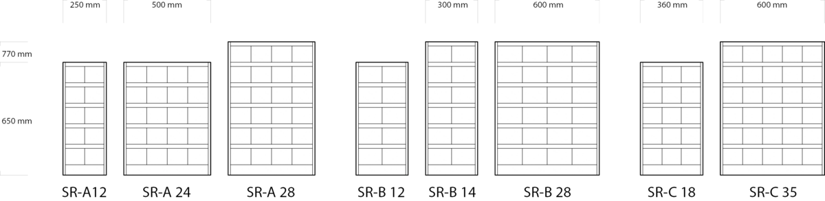 - SR-A har en rumbredde på 125 mm og fås i en 12, 24 og 28 rums model.