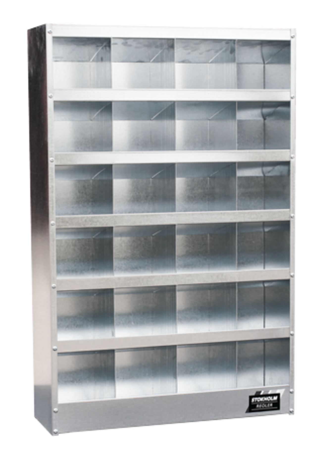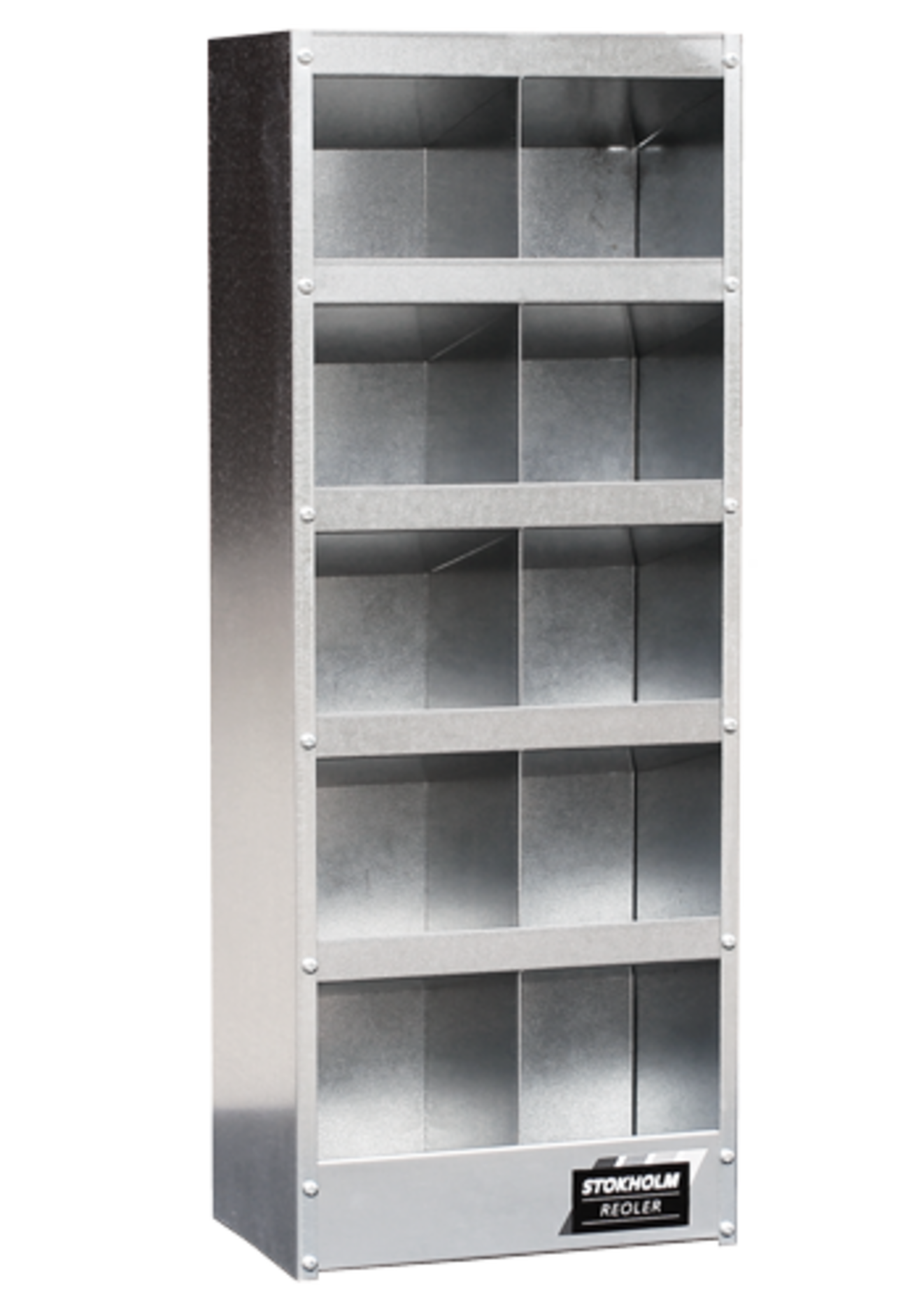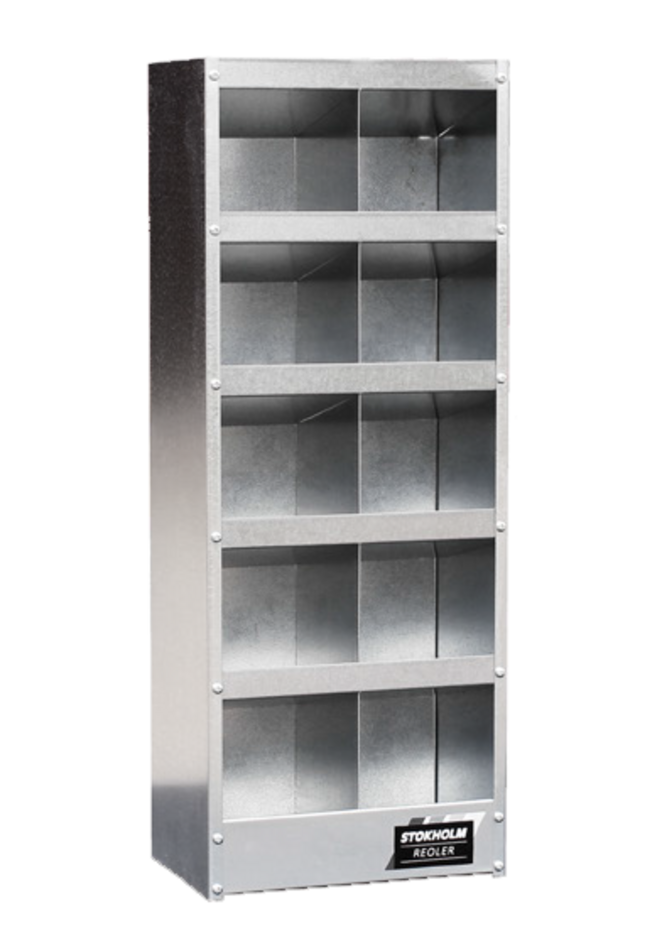 Vores sortimentsreoler er produceret i galvaniseret stål, der med sin lyse og refleksive overflade giver lyse rum, der gør reolens indhold lettere at overskue.