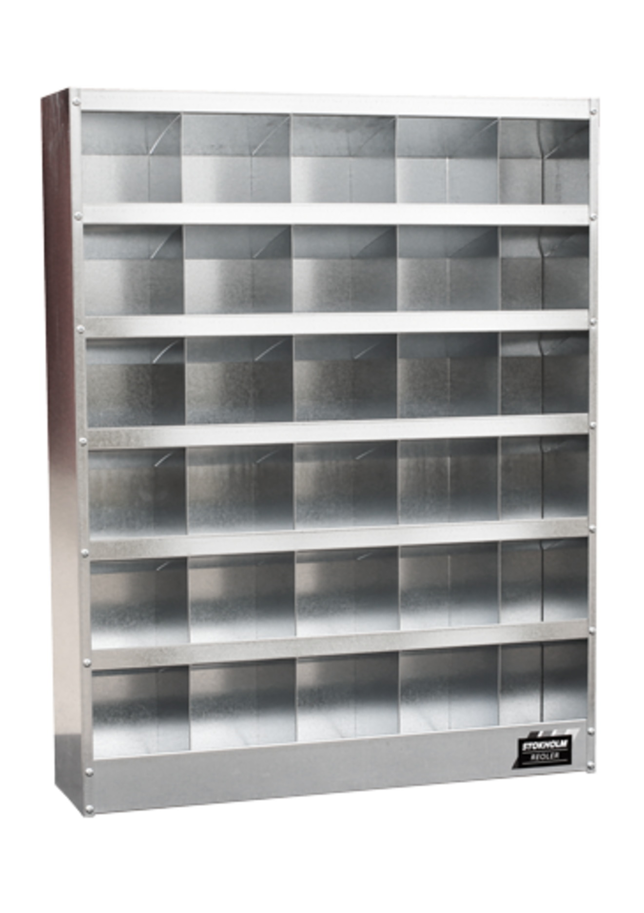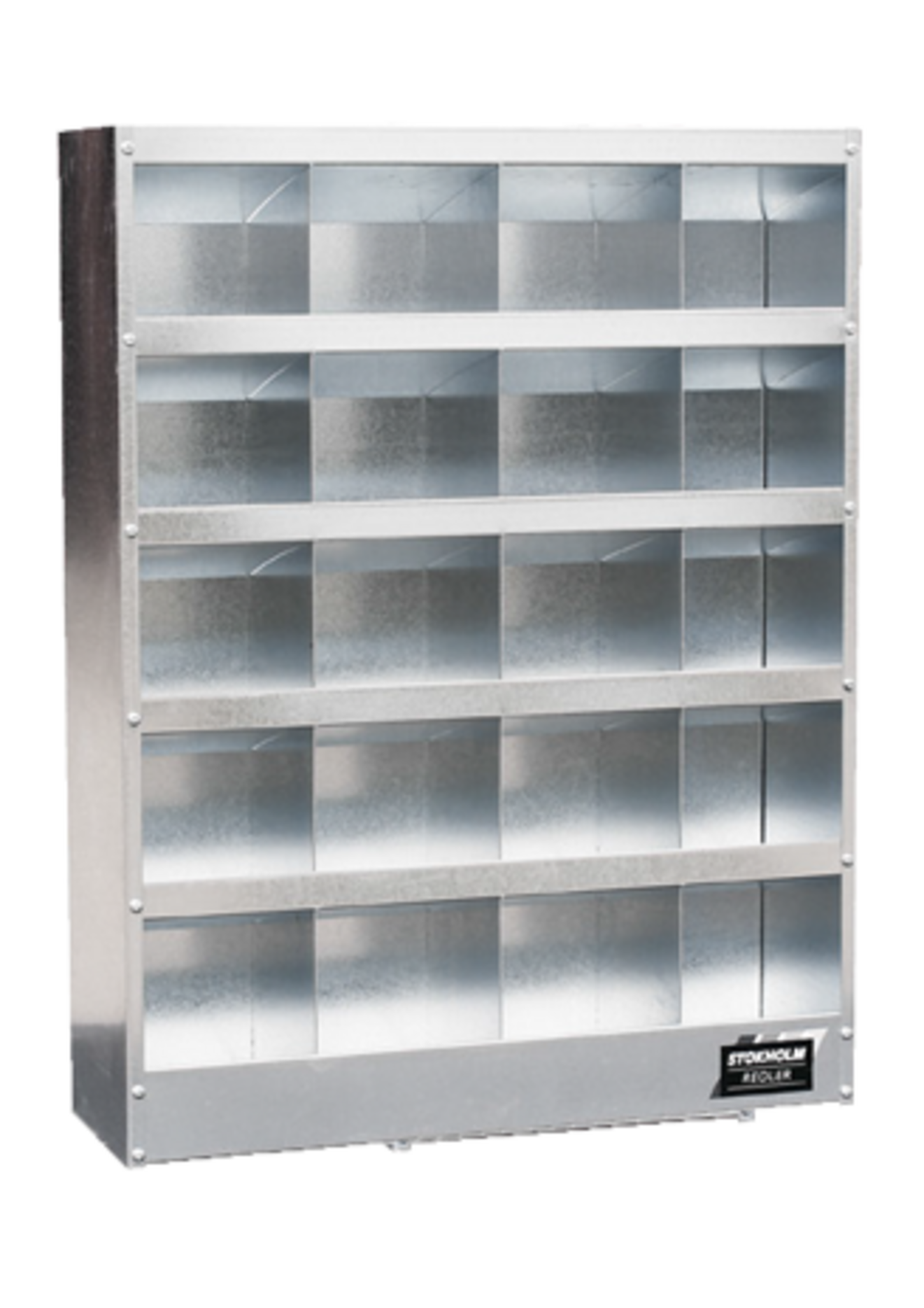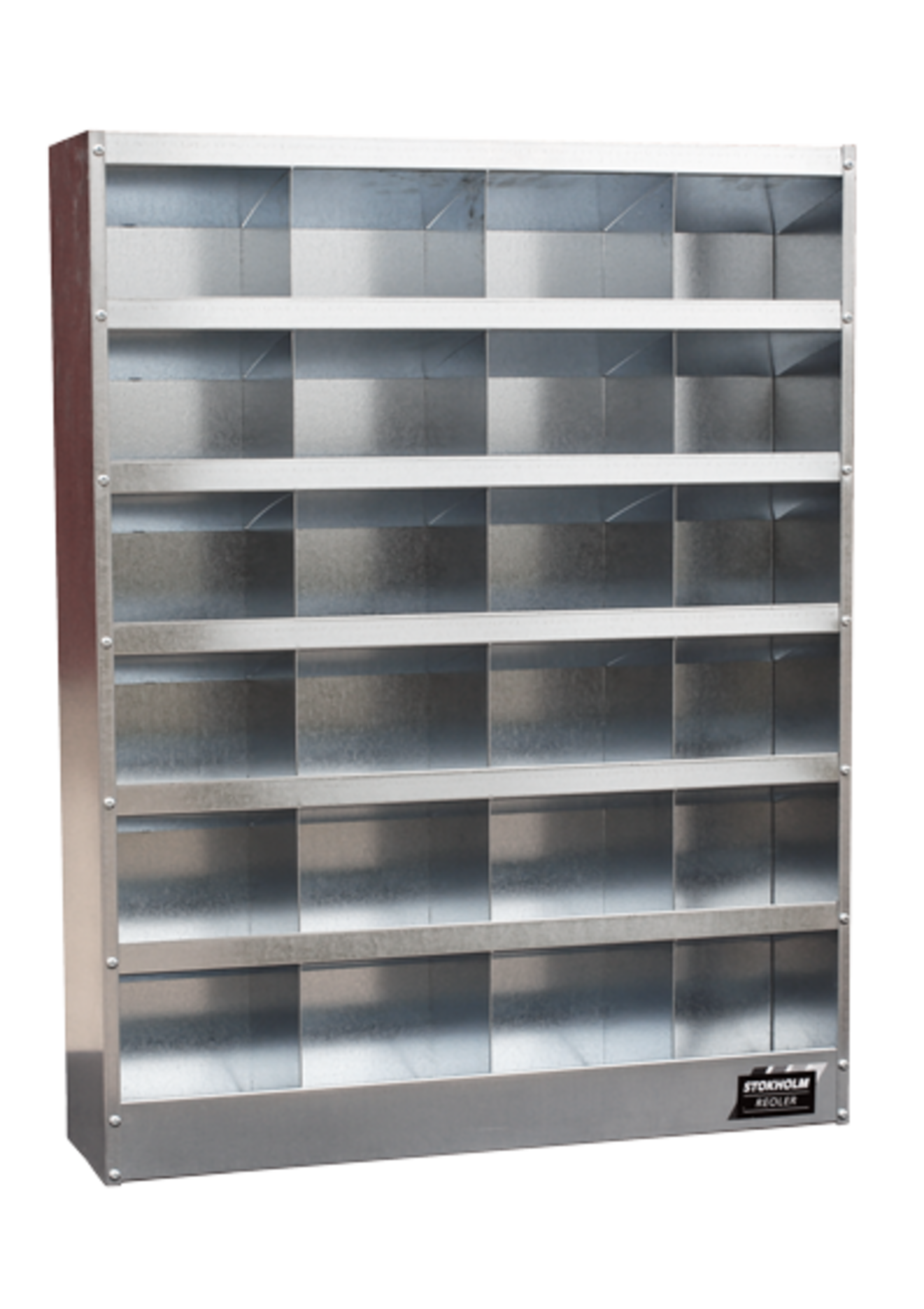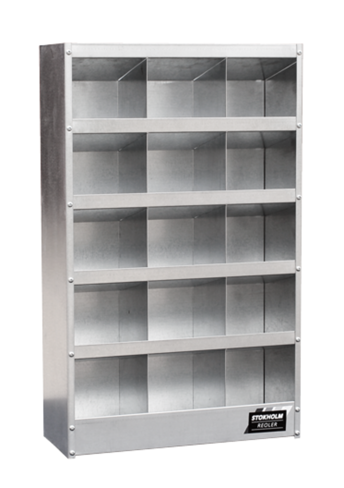 Vores sortimentsreoler er produceret i galvaniseret stål, der med sin lyse og refleksive overflade giver lyse rum, der gør reolens indhold lettere at overskue.